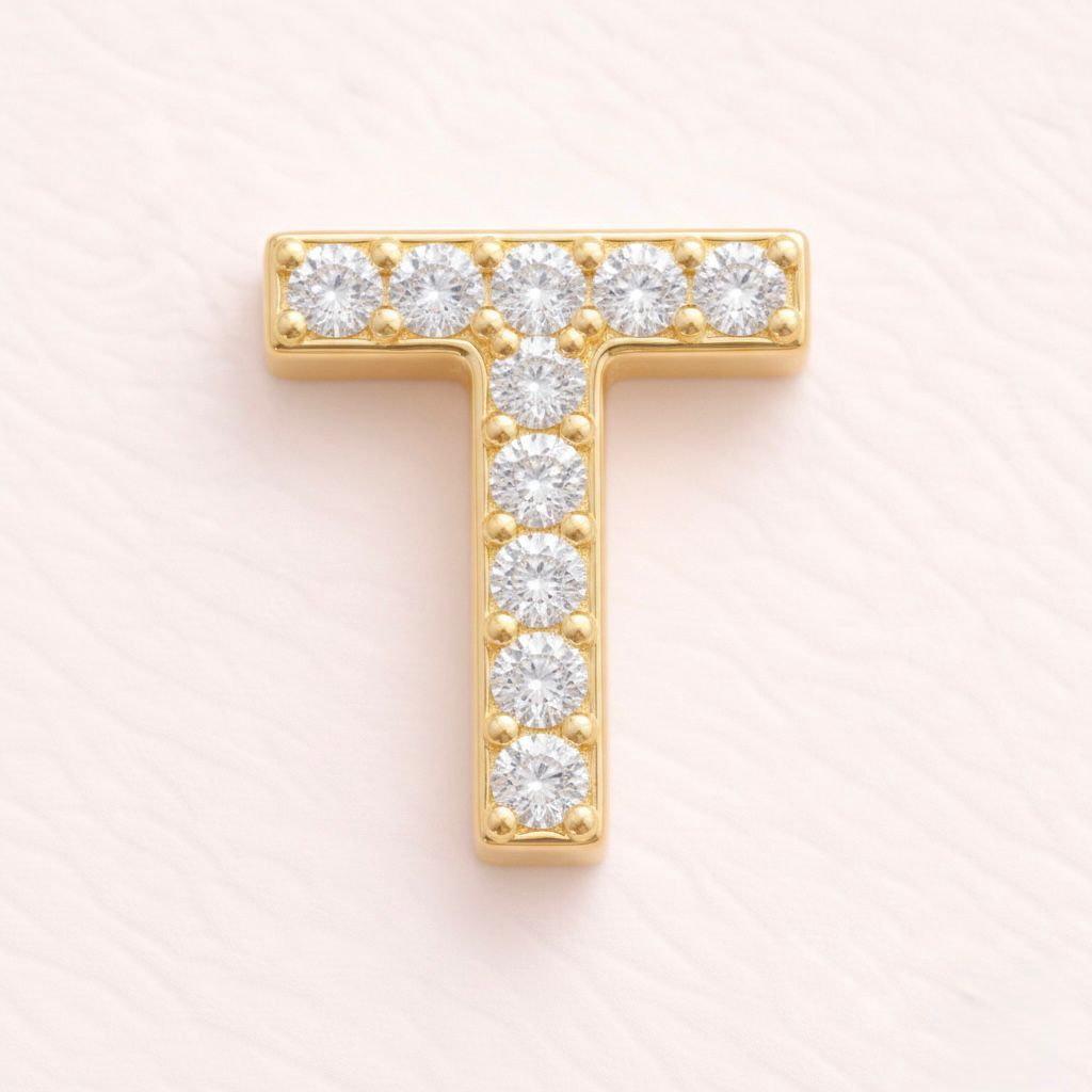 A sleek alphabet charm crafted from stainless steel with a gold plating and zirconia finish